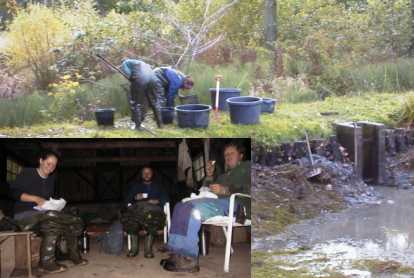Her fanges moderkarperne for at blive sat over i legedammen.