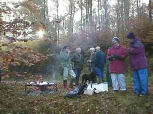 Grillen var blevet tændt og fire store 4kg's karper viklet i staniol lagt på grillen. Efter 3/4 time var der mulighed for at prøve-smage karperne.