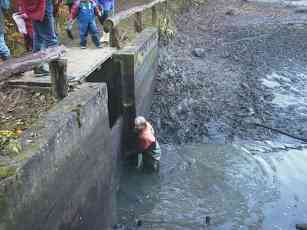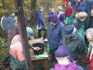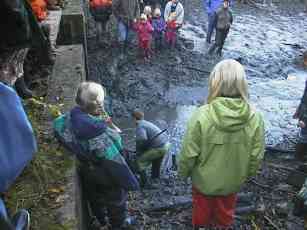 Nede i søen hjalp mange børn til med at få de store moderkarper op. Ved udløbet blev der flittigt sorteret i alle de mange små karusser og suder. Børnene havde en dejlig formiddag med fisk i tusindvis og masser af mudder.