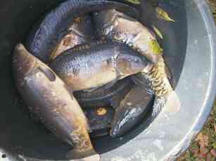 Her nogle af de indfangede moder-karper. Til sidst blev stembrædderne igen sat i.
