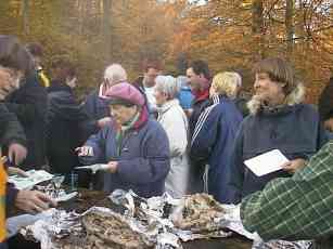 Grillen var blevet tændt og fire store 4kg's karper viklet i staniol lagt på grillen. Efter 3/4 time var der mulighed for at prøve-smage karperne.
