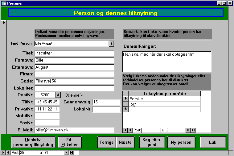 Skal der indtastes en ny person, er det altid en god ide, først at indtaste navnet i "Find Person". Det kunne jo være, at en anden medarbejder allerede har indtastet personen.