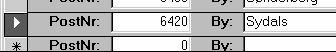 vil flytte markør til blankt felt, hvorefter du kan indtaste postnummer og derefter tilhørende bynavn.