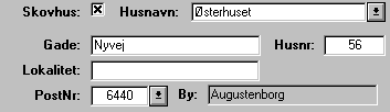 Postnr.: Postnummer indtastes med 4 cifre. Feltet skal indtastes, da det bruges til at finde byen der hører til postnummeret. Indtastes der et postnummer systemet ikke kender, spørges der om det skal tilføjes.