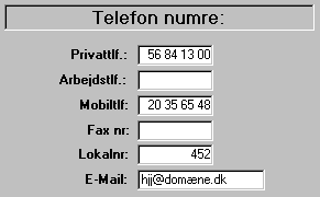 Telefonnumrene indtastes og skal være 8 cifre.